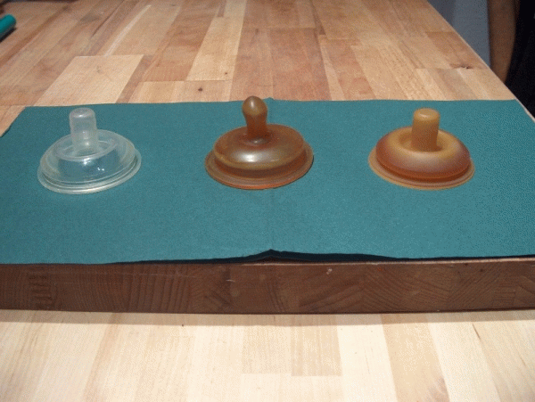 Bild 1: v.l. Silikon-Sauger; Orthodontic; Kautschuksauger normal