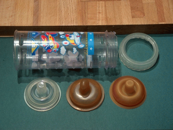 Bild 2: Playtexflasche mit den drei o.g. Saugern